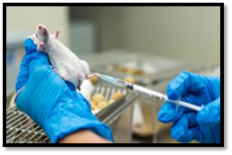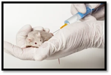 First of all, mice should be handled properly, or they are kept in restrainer or cage. There should be proper lightening system. They should be left for something in order to get rid of anxiety then their tail is move around in order to see the vein properly. Once the vein is clearly seen then the needle is injected into the tail vein the plunger is pulled back. If there is blood, then needle is not placed properly, and second indication of improper placement is the production of bleb which ultimately leads to chronic disease. We can inject to other side if the needle is not at its correct position. We can inject at least five sites on tail vein once injection is placed properly then put out the needle and clean the site properly. In case of intramuscular injection, the injection is placed in gluteal or thigh muscle. For these mice should be hold after correctly holding the mice and then the injection is placed at muscle at 90° or 45° and we have to check if the injection is placed correctly by pulling the plunger back. In intra peritoneal injection the mice should be placed properly in resting position that is in restrainer or it can be hold by one personal and injection should be placed by other personal. (F. Wu et al., 2012)